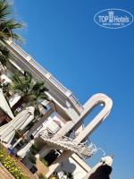 Территория отеля делится а две части:номерной фонд и зона отдыха(бассейны и береговая линия). Переход от одной на другую зону или с ресепшн через дорогу или через 3 этаж вниз по винтовой лестнице.
