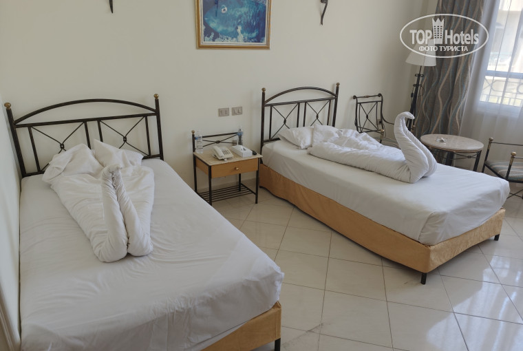 Заселение. При заселении проскочили шуточки, типа одна или две кровати нам с мужем нужны. Сразу насторожило, что нам дали ключ от номера 422, но никто не подошёл подсказать, где этот номер искать, какой чемодан туда везти. Как будто знали, что мы точно вернёмся его менять. С горем пополам номер мы нашли. Очень жалею, что не сфотографировала его. Нам абсолютно неважен был вид из окна: хоть на шумную улицу, хоть на глухую стену... Но к такому мы точно не были готовы - окна к номере не было вообще, от слова совсем. Назвать этот сарай, в который даже не попадает дневной свет, номером отеля язык не поворачивается. Мы сразу вернулись на ресепшн, потребовали номер с окном. Доплачивать не собирались принципиально - мы не просили поменять вид из окна или повысить уровень номера. У нас был оплачен номер-стандарт, в стандарте окно должно быть обязательно. Номер нам поменяли, доплаты не попросили. Но настроение уже было испорчено. И как мы узнали позже - такое отношение ко всем русскоговорящим туристам. Все, кто прилетел вместе с нами в этот отель, меняли свои номера.
