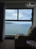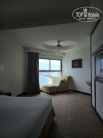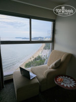Номер: Мебель уставшая. Неудобно располагается сейф - в нижнем ярусе мебели. Шумный кондиционер. Панорамный вид из окна компенсирует недостатки: на пляж, Лотос и остров Винперл.
