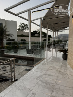 Территории у отеля как таковой нет , но все чисто , уютно , зелено . Все в шаговой доступности , да и в такую жару самое то.