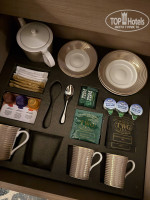 В каждом номере есть капсульная кофемашина, в улучшенных номерах фен дайсон в стандартных номерах фен фирмы Валера, но тоже не менее мощный. В стандартных номерах мини бар пустой, в номерах повыше уровнем в мини баре газированные напитки, вода VOSS и еще как-то напитки,но мини бар платный.