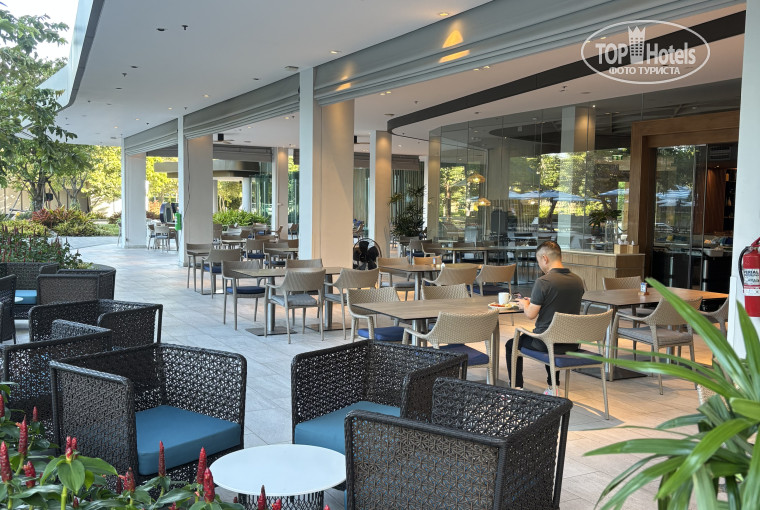 Завтраки в отеле начинаются с 6 утра и до 10:30. Удобно. Кушать можно как в помещении, так и на улице. Понравилось решение с карточками «стол занят». При входе в ресторан выдаётся такая карточка, а при выходе её сдаёте. Удобно. Ещё одно отличное решение для защиты ваших блюд на улице от птиц и насекомых. На улице в специальной тумбе хранятся защитные колпаки на тарелки. Подходите и берёте сколько нужно. В самом помещении ресторана очень сильно работают кондиционеры, нужно утепляться. Завтраки разнообразные, вкусные с большим выбором блюд как европейской, так и азиатской кухонь. Один существенный для нас минус: невкусные фрукты. Спелым и вкусным был только арбуз; дыня и ананас явно недозрелые и кислые. Зато есть свежевыжатый мультифруктовый сок (один вид), он менялся через день. Кофе был неплохой из кофе машины, чай никакущий.