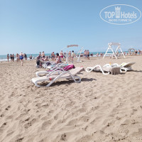 Пляж. Приятно, что идти буквально минут 5-7. Пляж чистый, лежаков всегда хватало, бичбои помогали передвинуть, стряхивали песок. Песок мелкий, шелковистый. Немного напрягало, что до глубины идти долго, но для детей идеально.