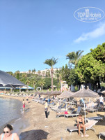Пляжная полоса узкая, но она достаточно длинная, есть пирс с лежаками и зонтиками, также лежаки расположены выше береговой линии под кронами деревьев, проблем найти свободные в любое время не составит труда. Море необычное. Оно ни холодное, ни теплое... Мы впервые на Эгейском. Будоражащее при заходе и комфортное при купании. Песок тоже не привычный, видимо содержащий слюду, т.к. если рукой или ногами поднять его со дна, вода начинает переливаться мелкими блестками. Много маленьких рыбок, утром прилетают одна-две чайки, с которыми можно устроить параллельный заплыв. Бассейнов два, один - 135 см глубиной с морской водой, второй - 165 см с пресной. У бассейнов всегда достаточно свободных лежаков. Про дневную анимацию не расскажу, почти весь день проводили у моря, но она есть. Вечером различные шоу и представления.