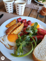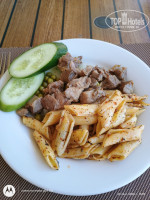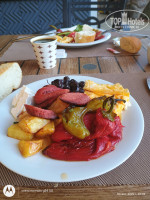 По питанию для бюджетного отеля очень даже хорошо! Завтраки: яйца, тушеные овощи, жареная колбаса, сыры, брынза, зелень, свежие овощи, колбасная нарезка, хлопья, джемы, каша, печенье и вафли и т.д. В зоне гриля – омлет, глазунья, жареные в масле пончики из дрожжевого теста. Обед и ужин: суп, свежие овощи, закуски, тушеные овощи, макароны, булгур, рис, пюре, из мясного – индейка, курица в различных вариациях, соевые котлетки (вполне съедобные), из рыбного несколько дней было филе сельди тушеное, а потом филе ставридки. В зоне гриль в обед и ужин постоянно и в неограниченных количествах пекли гёзлеме с разными начинками и пиде с фаршем. Еды всегда хватало, лотки пополняли даже в конце обеда или ужина.