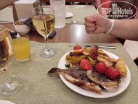 Тут отдельная тема, такого аврала и скопища народа надо только видеть было... Как-будто всем сообщили еды осталось на 30 минут и неделю больше ничего не будет, все мечутся, туда-сюда, понятно во многих отелях это квест уже не должен удивлять , удивляет он именно тут. Даже красиво оформленные блюда стоящие по центру зала, к которым никто толком и не подходит, так как просто не понимают что это, и бегут на выдачу рыбы, мяса... вот если бы ее бы делали с двух сторон хотя бы - очереди бы сводились к минимуму, а так получается поток прет в одну точку и начинается столпотворение, где сразу становится понятно почему так тут происходит, это элементарное идиотское решение сделать залы со столами в одной части, а набор еды в другой части, и ты с тарелками будешь как муравей бегать бестолково туда-сюда через единый проход, где все и собирают затор. Решение то самое простое поставить раздачу посередине и разбить на два крыла ПРАВО и ЛЕВО и все будет норм. Вторая проблема это сама еда, да ее тут очень много, даже слишком много... НО! она изо-дня в день повторяется, кажется вроде куча разнообразия, но нет изыска что ли... У меня так и сводилось к поеданию кашки, макарон, чего-нибудь мясного и фруктов. Да, тут есть куча пироженых, закусок всяких (не знаю просто не брали, худели наверное), фрукты особенно дыня и арбуз шикарные, из фруктов были сливы, виноград, мандарины (кислющие), бананы, апельсины, яблоки. Но вот эта гонка выбить себе стол и принести туда еду выматывала, и за добавкой не очень то хотелось идти вновь. Иной раз кстати казалось, что место тут найти для одного человека в разы тяжелей чем на семью 3-5 человек. Отель конечно видно, что старался разнообразить как-то типа Мексиканская ночь, Турецкая ночь ... Но как-то это не спасало.