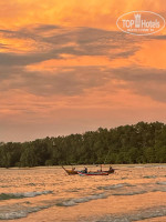 ТЕРРИТОРИЯ. Фактически, отель находится на территории королевского заповедника Сиринат. Данный заповедник преимущественно специализируется на сохранении редких видов птиц и растений, хищных животных (кроме варанов), в нем не водится. Как следствие, вся территория отеля утопает в зелени, вечером и ночью за окнами стрекочут цикады, а днем щебечут птицы. Территорию отеля от пляжа отделяет речушка, шириной метров 5 и полоса леса, шириной метров 100. Через речку можно переправиться на небольшом пароме, который функционирует до 21:00. Если припозднитесь и вам понадобиться паром после 21:00, нужно будет связаться с рецепшеном по WhatsApp, придет сотрудник и вас переправят.