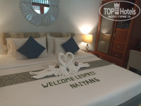ЗАСЕЛЕНИЕ и НОМЕР. От аэропорта Пхукета до отеля мы (семья из 3 человек с ребенком 14 лет) добирались около 7-10 минут, и прибыли туда в 11:00. Нас угостили приветственным фруктовым напитком, и предложили оставить свои вещи в камере хранения при рецепшене, и погулять по территории отеля или по пляжу до 14:00. С нас взяли депозит 100 долларов. Гулять по территории отеля особенно было негде, т.к. она не велика: основной - двухэтажный корпус, первый этаж которого занимают рецепшен, ресторан, массажный кабинет и спортзал; на втором этаже несколько номеров; центральный несколькоярусный неглубокий бассейн, вокруг которого расположены виллы (по 10 домиков с каждой стороны) с индивидуальным выходом к бассейну; за данными виллами – 2-я линия вилл, без выхода к бассейну. Всего в отеле около 40 номеров. Вай-фай бесплатный, интернет на территории отеля работал на 3+.
