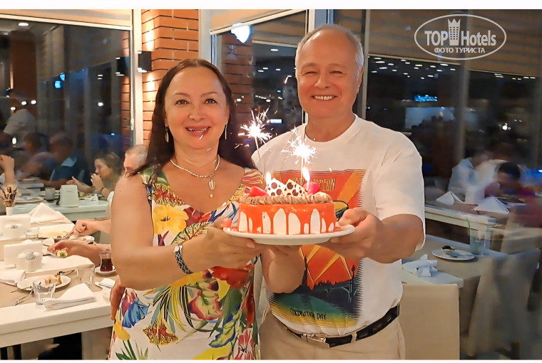 Отпраздновали отеле день рождения супруги и от отеля был трогательный комплимент- накрыть стол с шампанским и поздравление от сотрудников отеля с именинным тортом со свечами. Просто при заезде мы указали , что у супруги юбилей и сотрудница Джульетта-очень внимательно, подготовила нам на этот сюрприз. ОГРОМНОЕ СПАСИБО !