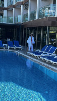 Первая береговая линия, пляж песчаный и выход к морю прямо из отеля по подземному переходу. Чистый Бассейн, хотя ни разу не пользовались, хватало моря, благо с погодой повезло! Бар на открытой террасе и внутри. Кальяны.