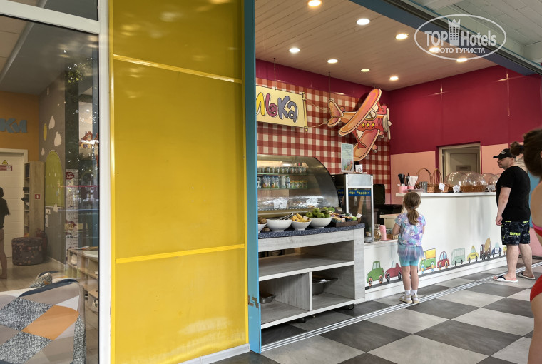Родителям поспокойнее, для них: рестораны, бары, пляж (галечный). Всякая движуха у моря (дартс и так далее), бар, кондитерская, снек-бар с шаурмой и прочим фастфудом пока основной ресторан закрыт.