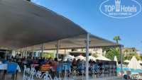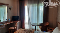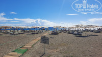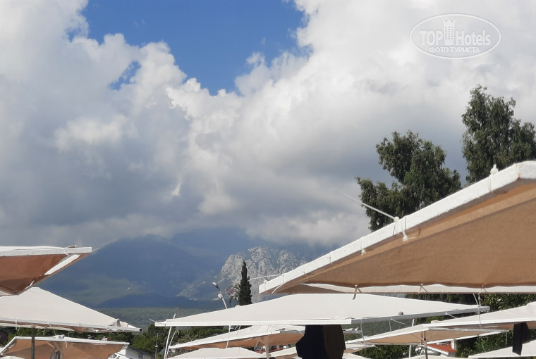 Пляж- песчано-галечный, достаточно широкий, для входа в море лучше иметь специальные тапочки. На пляже зонтики, с одной стороны – это плюс, лежаки расположены достаточно свободно, не вплотную друг к другу. Найти свободные лежаки может быть проблемой после 11ти. Некоторые лежаки требуют замены, зонтики -ремонта, как и дорожка на пляже. У отеля есть бар на пляже, хочется отметить, что сотрудники открывали бар уже в начале 9го, выставляли питьевую воду, включали кофе-аппарат. У соседних отелей бары начинали работу гораздо позже. От отеля до пляжа – 400 м, неспешным шагом – 6 минут. С пляжа отелей практически не видно, зато красивый вид на гору Тахталы. Плаваешь в море и наслаждаешься горными видами.