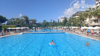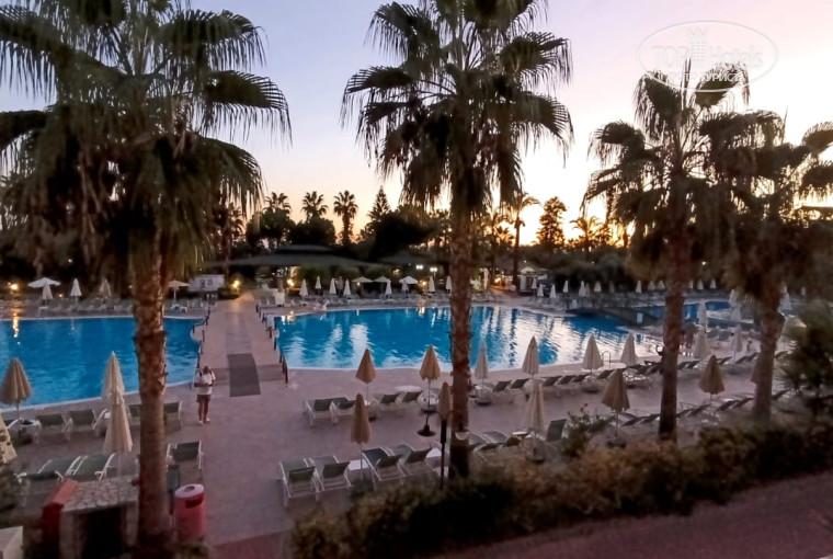 ТЕРРИТОРИЯ - это самое лучшее в отеле, очень зеленая, красивая, чистая, убирают хорошо, стригут траву, моют дорожки. Из растений - много пальм, росли мандарины, лаймы, лимоны, даже грейпфруты , оливки и маслины. Бассейны отличные, горки хорошие, одна не работала, на самой большой понравилось даже моему взрослому 18- летнему сыну. Иногда была дискотека до 2 ночи, но при закрытой двери было в принципе норм. В амфитеатре проводили анимацию своими силами - на любителя.