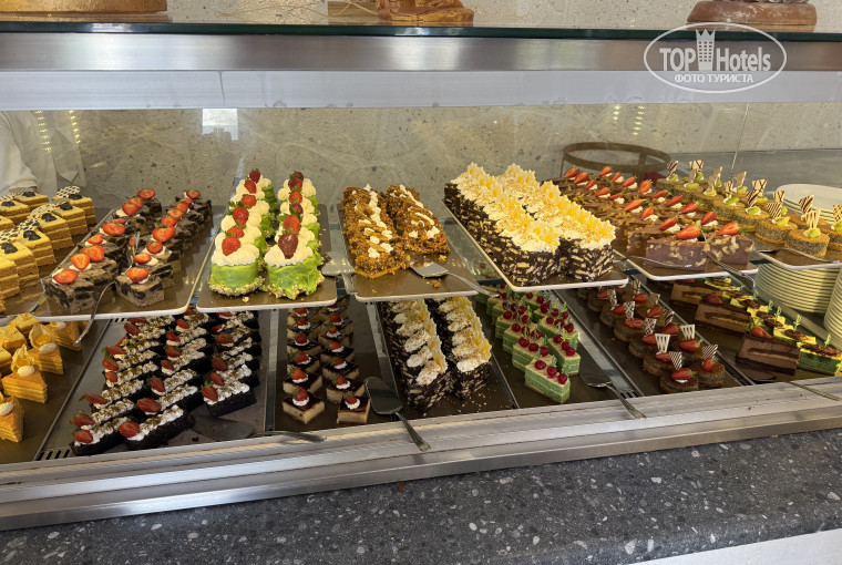 Территория чистая красивая. Есть апельсиновый сад. Очень много апельсинов, рви сколько хочешь, домой бери сколько увезешь. Еда вкусная и разнообразная, рыба каждый день. Алкоголь не плохой, что редкость для Турции. Мороженое и сладости в отдельном кафе у пляжа. Бутилированная вода на всей территории в холодильниках. В дальнем здании есть кафе где готовят пиццу, гамбургеры и детская комната.