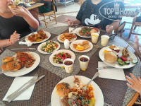 Всем здравствуйте! Отдыхали в этом отеле в сентябре. Отель не плохой, путевку покупали из бюджетного сигмента , поэтому ничего особо не ждали от отеля, летели ради моря. Приехали в отель пол 11 утра, браслеты одели сразу, заселили через минут 40. Номер был в самых последних корпусах, зато тишина и бассейн который принадлежал практически только нам, только чистили его редко и был грязноват. Номер хороший, не новый но не убитый, убирали каждый день хорошо, постельное и полотенца тоже меняли каждый день. Очень понравилось что есть вай фай на всей территории и в номере и на пляже, ловил всегда хорошо. Еда однообразная но все вкусно и сытно, всегда несколько вариантов мяса, рыбы, гарниры рис, картошка, макароны, овощи паровые, салатов и овощей много, сладостей тоже много, фрукты были всегда бананы, дыни, финики, апельсины, инжир и т.д. Напитки нормальные, алкоголь кроме пива и виски не пробовали, пиво конечно не очень вкусное, но и в магазине покупали тоже не вкусное было. Стаканчики нормальные, ходили за пивом много раз, ни нас ни бармена это не напрягало, всегда наливал помногу и холодное. Территория большая, зеленая и чистая. На пляж ходить совсем не далеко, даже с дальнего корпуса это минут 5-7, лежаков много, всегда можно найти свободные но не всегда под зонтиком т.к. зонтов маловато. Пляж с мертвыми кораллами и заход из за этого местами неудобный, босиком можно аккуратно пройти между, но лучше одевать кораллки. Рыб на пляже отеля почти нет, иногда проплывают какие то, но на соседнем пляже Новотеля хороший коралловый риф, рыб много, есть что посмотреть. Для детей в отеле ничего практически нет кроме бассейна на первой линии и разломанной детской площадки на пляже , кстати пользовались бассейнами и полотенцами первой линии без проблем. До центральной улицы со всеми магазинами минут 8-10 идти, в принципе не сильно далеко, но по духоте вечерней не очень комфортно ходить. Обслуживающий персонал очень приветлив, несколько раз обращались на ресепшен сначала тек бочек унитаз потом потек кондиционер, все решали сразу же без проблем. В сентябре отдыхало очень много арабов, нам это ни как не мешало и персонал по моему мнению гостей не делил. Вот единственное что очень не понравилось так это то что номер не продлили, у нас самолет обратно был в 9 вечера а выселение в 12 дня, браслеты срезали сразу, ни на море ни в бассейн получается не сходить так как полотенца по карточкам а карточки сдали, хотя как говорят инфраструктурой отеля можно пользоваться, это получается только туалетом😅ну естественно пообедать тоже нельзя, при нас молодые люди решили схитрить и поесть так их оштрафовали. Продлить мы хотели, спрашивали в первый же день что бы продлили, сказали 30$ это стоит и прийти за день два до вылета, но ни за два ни за день и в день вылета не продлили, постоянно кормили завтраками приходите утром в день вылета, а потом с отстраненным лицом сказали мест нет, и то что мы были с ребенком тоже не спасло, это было очень не приятно, мы до последнего надеялись что продлят, этим отель испортил о себе мнение. Поехали бы еще сюда, возможно если цена будет такая же бюджетная, два взрослых и один ребенок 5л на 9 ночей вышло 2200$.