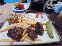 Завтрак- шведский стол- совсем незатейливый, зато ужин приносит Фархат- большое блюдо, все свежее и вкусное, мясо каждый день.
