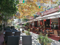 Все тот же Фархат, целый день за стойкой бара, болтает с туристами, шутит, смеется. Неназойливая музыка, над головой- разноцветные фонарики. Очень атмосферно! По понедельникам приезжает анимация, тут уже громкая музыка и танцы до полуночи.