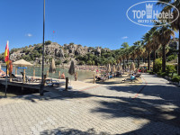 За бассейном пляж. Рядом с бассейном достаточно большой по протяженности снек-бар и еще один бар.
