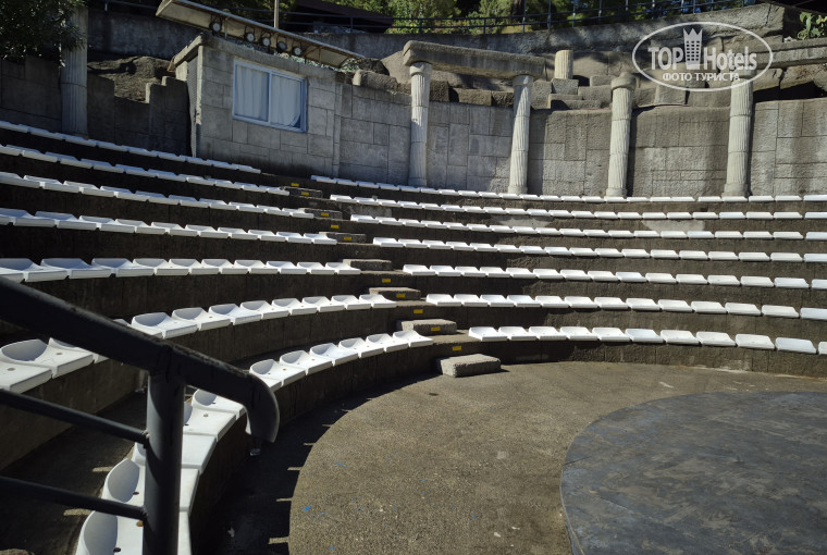 Здесь можно подняться на второй этаж, где находится ресторан а-ля карт под открытым небом. В октябре не работал. Еще один бар. В октябре не работал. Следом еще один бассейн, небольшой, с лежаками. Холодный и не ухоженный. Видимо, забросили уход за ним в октябре. Возле этого бассейна лестница, которая ведет наверх в малюююсенький тренажерный зал.