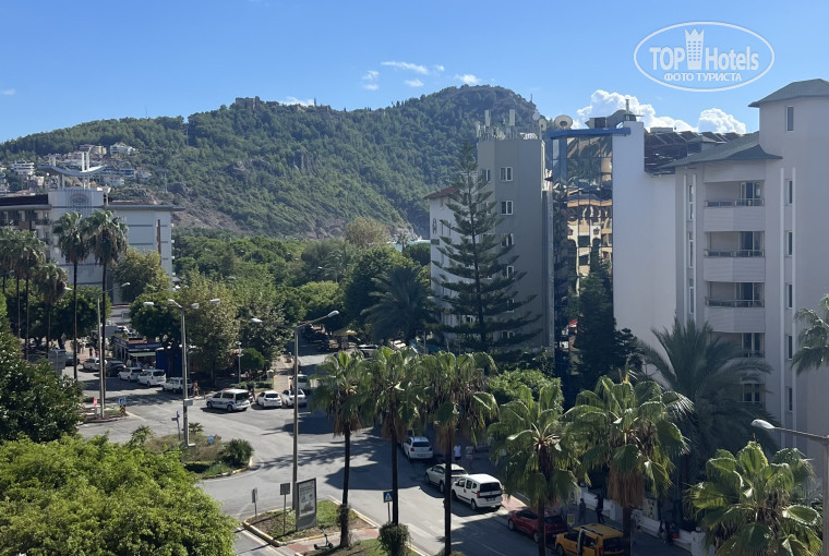 Пляж Клеопатры через дорогу в 2 минутах. Плиты конечно встречаются, но очень минимальное количество. Лежаки и зонтики платные, при покупки дают пароль от вай-фая, по стоимости если правильно помню 300 лир за лежак и зонтик.