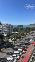 Если пройти чуть дальше в сторону порта, где то за теннисным кортом. Там тоже хороший пляж и плиты уже не встречала. И зонтики с лежаками дешевле за 260лир можно взять.