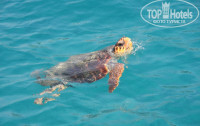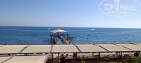 3. ПЛЯЖ. Бар на пляже так же с хорошим питанием, можно не ходить иногда на обед. Пицца все такая же вкусная, тут все без изменений. Удобный заход в море, но убрали из камней детский лягушатник, который был 2 года назад. Все так же ходят на пирс 2 соседних отеля, которые на второй линии и пирса у них нет. Женщина из отеля (смотрящая) пыталась пару раз прохаживаться и не пускать на наш пирс посторонних, но это работает только в моменте, через минуту, когда она уходила, опять на пирсе проходной двор. С этим все таки нужно что-то делать! Вот пирс Катамарана и Розы гарден охраняют и гоняют посторонних. Далее, 2 года назад кусались рыбки и их было больше, чем в этом году, не знаю, с чем это связано, с экологией или еще с чем, но рыб стало заметнее меньше. Морская крапива иногда пощипывала руки, ноги у буйков как и 2 года назад. Приятным бонусом было увидеть огромную морскую черепаху, проплывающую возле нашего пирса, когда была погода не очень и народ не купался, так что, черепаху мы видели у пирса 2 раза!!! Одинокий краб иногда ползал по дну у пирса между камней, кальмаров не видела в этот раз, а вот рыба-игла проплывала....были и бакланы у буйков, ныряли и ловили рыбу. Пляж отеля - это отдельная любовь моего сердца. Потрясающие восходы и вид на горы. Ну и солнце в этом отеле уходит за гору в районе 16:15 и на пляже становится прохладнее.