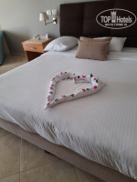 В отель привезли нас около 20-00. Отель состоит из огромного основного корпуса с рессепшном и несколько бунгало. Нас заселили в основной корпус за 5 минут. Номер - шикарный. Заселили без всяких намеков на доплату. Большая площадь. Огромная кровать (2м шириной!!!). Очень удобная. Диванчик, телевизор, стойка с чайником. Чай, кофе, сахар, сухие сливки - всего достаточно и пополнялось постоянно. Балкончик со столиком и стулом с видом на бассейн (на фото - вид с балкона). Большая ванная комната. Сантехника вся рабочая. Единственный минус - несъемный душ.