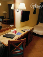 4. Номер. Нас было трое, номер просторный, красота. В ТВ можно воткнуть флешку и смотреть что-то своё, если привезли. Холодильник, фен в ванной, чайник, посуда, сейф. Воду пополняют ежедневно, если мало, можно в баре ещё взять. В ванне шампунь, гель для душа. Мыльницы сильно не хватало. Зубные щетки и пасту везите свои, не предоставляется. Полотенца меняют ежедневно, если бросите на пол. Считайте по количеству сразу, если не доложили, надо сообщить, а то потом будет сюрприз и счёт. Полотенца для пляжа выдают в ларьке по дороге к трансферу на пляж в обмен на карты для полотенец, их выдадут при заселении. Вечером в обратном порядке – обмен полотенец на карты. В номере на балконе сушилка, очень удобно. Жара сухая, всё сохнет быстро.