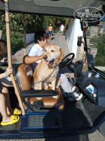 В отеле проживают очаровательный собакен-лабрадор и две кошки. Не приблудные, а находящиеся на обеспечении, песеля взяли из приюта. За это сразу 100 баллов в карму.)) С собакой возятся все, мне раз доверили с ним погулять. ) Кошки откормленные и довольные, разрешают себя гладить и тискать сколько угодно и в столовой к туристам не пристают, дрыхнут на диванчиках.