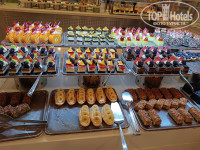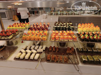 Питание. Ну я не знаю, кто недоволен питанием, оно на высоте. Очень и очень разнообразное. Каждый день обязательно и мясо (говядина иногда, баранина, курица ), и рыба (семга, форель, дорадо и др.), овощи – и все вареное, тушеное, жаренное, гриль, копченое и т.д. Не говоря о гамбургерах, картошке фри и т.п. Каши, супы, омлеты так же присутствуют, утром пекут блины и оладьи. Раз в неделю японская кухня, примерно столько же раз королевские креветки. Многочисленные закуски, большей частью и не пробовала, соленья, сыры и т.д. Обалденная выпечка, во рту тает, особенно круасаны. А какие сладости – пироженные, торты, сколько раз себе давала слово хотя бы на ужин их избегать, не получалось, уж больно все красиво. Фрукты типа яблок и груш даже не ела, ела персики, нектарины, бананы, дыню, арбуз, был даже драконий фрукт. И все очень красиво оформлено. Кофе из кофемашин, колу, вино, пиво приносят официанты. В целом добавлю, что очень чисто. Короче за питание ставлю 10 из 5.