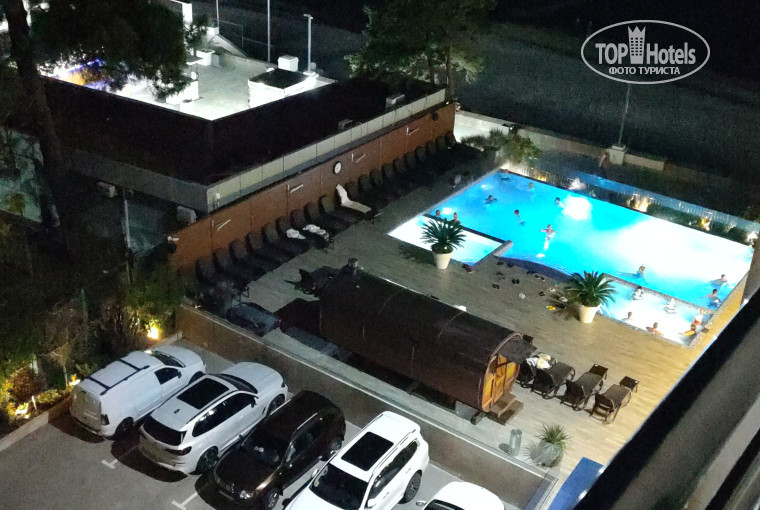 Бассейн на улице принадлежит соседнему отелю, но для гостей отеля Адельфия 1500 руб с человека на целый день. Бассейн очень теплый, я бы сказала горячий. Там после 18 часов можно посетить баню. Работает бассейн до 22:00 ( зимнее время).