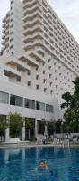 Ноябрь сразу после праздников, из Москвы, туроператор Библиоглобус, перевозчик Аэрофлот! Как сели в самолет через час напитки, через полчаса ужин, учитывая что вылетили с Москвы в 21-45, покушали как говорится от пуза, горячие курица, рыба, салатик, шоколадка, вино белое, красное, чай, кофе, в общем по полной программе.. + сумочка от Аэрофлота с тапочками и повязкой для сна. Через 3 часа опять кормили, и напитки, для перекуса было печенье и орешки. Время в пути 8 часов 20 минут. Приземлились в Бангкоке, посадили в автобус и были в дороге 2 часа 30 мин. Приехали на Джамтьен, в отель заселили сразу, в номере 2 бутылки воды, в душевой в бутылках шампунь и гель для душа, уборка ежедневно с 10 дл 12 часов, воду пополнили тоже ежедневно и туалетную бумагу приносили. Номер просторный, с балконом на 10 этаже. Бокой выд на море и ночной рынок ( ужинать можно там) покупали рыбку за 150 бат,на вынос ( с собой) к ней салат огурчик+помидорки+капуста. Есть выбор морепродуктов и супов, Том Ян, употребляли ежедневно. Хорошие коктейли из фруктов, смузи. В отели хороший бассейн, на первом этаже полотенца для отеля, в книжке записываешь дату, время, кол-во шт. Выход в отдельную дверь, ближе к столовой. Бассейн чистый, фильтуется постоянно, без хлопки!!! Очень понравилось там. Лежало всего 10 шт. Маловато.