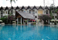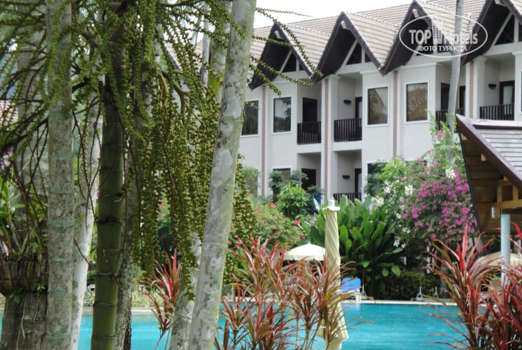 Территория действительно, как уже это и описали многие туристы, большая, ухоженная и зеленая. Duangjitt - это несколько длинных двухэтажных корпусов и отдельных бунгало, а также большого административного здания с рестораном при нем, обилия отдельных беседок, летних веранд и детского домика-грибка, расположенных среди ухоженных газонов, зарослей пальм и прочих цветущих лиан, да возле голубых пресных хлорированных вод причудливой формы бассейнов.