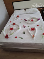 Отдыхали с мужем две недели в сентябре 2025. Приятно удивлены. Приехали рано, сразу получили браслеты и пригласили на завтрак, обещав скорое заселение. Попросили номер с видом на море, нам пошли на встречу и дали номер на 4 этаже с чудесным видом. В номере достаточно разной косметики, есть чайник и чайный набор, минибар (всё кроме пива :-) ), воду дополняют ежедневно.