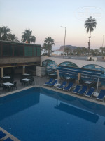 В отель приехали поздно вечером. На ужин не успели,на суп не пошли. Сказать был он или нет утверждать не буду. Заселили быстро. Выдали ключ и мы сами отправились искать номер. Расположение номера хорошее. На 1 этаже. Над рецепшеном , что однозначно радовало потом, так как интернет там не подключён к номерам и купить его в отеле нельзя. Близость номера позволила нам иногда из номера иметь доступ к интернету. Спустились вниз и с удовольствием выпили чай. Отдыхающих было не много. Играла музыка, дискотека, которая повторялась каждый день. Это плохо. Надоедает. Я думаю не так сложно сделать побольше подборок и менять каждые 3 дня. Первый наш день отдыха обратила внимание что есть в баре из того что больше всего в спросе у отдыхающих: пиво,вино. И вот не приятный сюрприз. Оказалось что это остатки, а далее только в Мигрос. Благо он в соседнем доме. Оказывается с 1 ноября в этом отеле спад сезона, так называемое затишье. Анимации , вино,пиво,выбора фруктов НЕТ. Были арбуз,дыня,яблоки,мандарины-такое ощущение «лишь бы было». Разнообразие еды-вообще отсутствует. Завтрак-варёные яйца,помидора,огурцы,зелень,сыры,подозрительная колбаса,оливки,маслины,вафли,печенье,каша(к которой почему-то толком никто не подходил). Хачапури и сосиски были не каждое утро. Обед и ужин почти тоже,добавляли порционно курица в основном.макароны,рис,картофель,горох,капуста. Суп . Мясное выдавалось один кусочек в тарелку. Один раз дали морковь.была пару раз рыба. Итог: на столько все скудно и однообразно,что спасибо расположению магазина рядом . Из десерта только один вид-пахлава. После приезда какого-то начальства или комиссии качество еды и разнообразие улучшилось. Но это на 2 дня. Далее все по накатанной. Ребята официанты работают,как пчёлки. В столовой и около бара чистота. Спасибо. Очень хочется отметить Махмеда Умница. Всегда подмечает и старается помочь отдыхающим. Номер: не убирался никак. Мусор выносили сами,полотенце поменяли сами,когда увидели,что рядом убирают номер и попросили заменить. Пляж: лежаки большая часть поломаны, зонтики сами себе устанавливали около лежаков. Матрас нормальный. Пляж частично убирали. Ну и наверное итог: больше в этот отель не поеду. Голодные совсем не были. Из плюсов: расположение, вход в море,работа официантов, набережная. Минусы: вообще никакой уборки в номере, смены постельного белья,отсутствие анимации, однообразие дискотеки, которая только до 22:00. Очень скудный рацион и некоторое качество еды, выпечка одного вида.