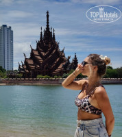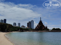 В отеле жили семьей, я с мужем, мамой и двумя детьми 16 и 8 лет. Отель выбран был первой локацие, так как север Паттайи рекомендуют как наиболее чистый пляж и море. Рядом пляж Вонгомат, но при отеле есть свой кусочек пляжа, вид на храм истины, супер! отливы были пару раз утром, к 10-11 вода возвращалась.