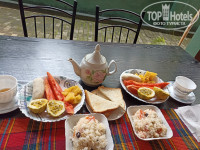 Могу сказать, что для своей звёздности, отель отличный. Мы были только в начале сезона и проживали в этом небольшом отеле только вдвоем. Чувствовали в нем себя как дома. Хозяин, Сергей, очень приветливый и старался помочь нам во всех вопросах, советовал куда сходить покушать, где лучший пляж, как добраться до необходимого места. Встретили нас на тук-туке и так же проводили, так как он находится в тихом переулке и туда не доехать на автобусе и это в основном у всех отелей которые не находятся у центральной дороги. Зато, как тут уже писали, утром выходишь из комнаты на террасу и слушаешь пение птиц, летают птицы и попугаи, по пальмам прыгают обезьяны, кричит павлин, в общем ощущение, что ты находишься в тропических джунглях. Завтраки однообразные, как их тут называют, контенентальные (яйцо, сосиски, тосты с джемом, чай, фрукты, (у нас были бананы, папайя, ананас,маракуя всегда свежие), через каждые 2 дня хозяин готовил рис с фруктами и орехами, вкусно.