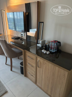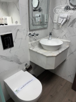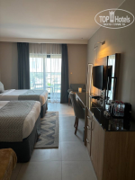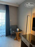 Сам номер в отличие от общих зон отеля немного не доделан после косметического ремонта. В ванной комнате пятна краски по углам, затирочные швы в плитке неровные и присутствовало ощущение небольшой обшарпанности. Я это отметила, но на мой отдых это никак не повлияло. Я могу видеть такие вещи, но они не портят мне настроение.