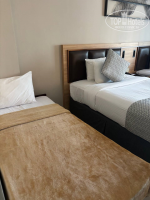 Номер на троих у нас был стандартный - две большие кровати, практически двуспальные и одна раскладная кровать. Она, в свою очередь, была очень неудобной, потому что пружины весьма сильно давили на ребра.