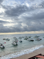 Отель находится в бухте где нет волн, поэтому перед ним всегда стоят лодки, но правее есть пляж где спокойно можно купаться, есть небольшой коралловый риф с рыбками, стоит захватить с собой очки, ну или можно взять на прокат на пляже ( местные организовали несколько точек проката)