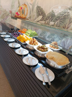 ПИТАНИЕ очень вкусное: курица, рыба, говядина, печень, макароны, яйца, омлет, блинчики, джемы, мед, картофель, всегда супы двух видов, запеченные овощи и много чего еще. Всегда есть гриль: рыба, курица, говядина. Выпечки тоже много и разнообразной. Фрукты были и нарезанные и целые. Вечером всегда на улице, перед ступеньками, жарится то шашлык, то рыба, то кюфта, то печень – подходи, бери сколько хочешь. Официанты моментально убирают грязную посуду. Посуда всегда чистая. Очередей не было.