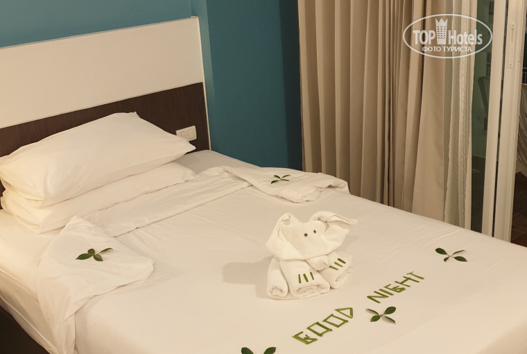 Заехали дикарями, так как на "букинге" было хорошее предложение на этот отель и, к тому же, давно хотелось пожить на пляже Карон. Первое впечатление неоднозначное. Дали номер с видом на забор, совсем не то, что на фото. При размещение в такой номер, отель не тянет даже на три звезды. Кевин с ресепшена быстро решил вопрос и предоставил номер с видом на бассейн и море, что нас вполне устроило. Номера в отеле хорошие: средних размеров, есть нюанс - раковина расположена прямо в прихожей, но это ни коим образом не доставляет дискомфорта, есть холодильник, набор халатов и тапочек, зонтики, сейф, много места для хранения вещей. Балкон заслуживает отдельной похвалы, большой и очень комфортный с прекрасным видом. Так же на балконе есть удобная сушилка для вещей. С удовольствием проводили время вечером на балконе под живую музыку из соседнего ресторана. Территория у отеля отсутствует, есть зона возле бассейна, достаточно комфортная, с лежаками, зонтиками, акациями и птичками. В баре делают вкусные коктейли. Бассейн тоже неоднозначный, с одной стороны, классное джакузи и размер самого бассейна, с другой, холодная вода и мелко (1м. 10см.). Не смотря на эти недостатки, мы активно пользовались бассейном, пока пережидали дневную жару. До пляжа ходить хватило сил только на два дня, после чего пересели на мопед. Дорога непростая, с несколькими переходами оживленных улиц. Возможно кому-то понравятся пешие прогулки от отеля до пляжа, мы к данной категории не относимся. Про пляж Карон все всё знают, для купания и для игры в волейбол отличное место. Завтраки в отеле нам понравились, кофе очень вкусный. Для ужина выбрали ресторан на нашей улице, называется "Sweet&sour". С дружелюбным персоналом и вкусными блюдами. Рекомендую фруктовый киоск рядом с этим рестораном, делают вкусные соки. Ресторан напротив отеля не очень понравился, атмосфера так себе, живую музыку из этого ресторана слушали с балкона. Уборка номера была хорошей, было приятно возвращаться в чистый номер. Персонал очень старается угодить гостям. За это отдельное спасибо. Угощали мороженым, проводили мастер класс по кручению фигурок из полотенец. Всегда интересовались всем ли мы довольны. Отель больше похож на хороший трехзвездочный.
