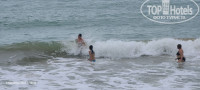 В начале отдыха было пасмурно, но тепло. Море волновалось, но детям нравилось попрыгать на волнах. Потом успокоилось. Температура воздуха была 27-28 градусов. Температура моря 26-25 градусов.