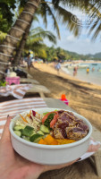 Ежедневно в 12 с на пляже отеля разделывают свежего тунца, 3500 рупий порция, вкусно.