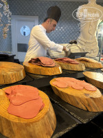 Появилась отдельная стойка у фруктов , где на завтрак сотрудник разделывал сыры , колбаски , а ля буженину ….