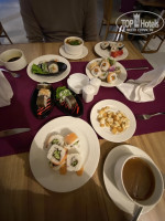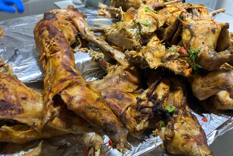 Еда. Она разнообразна и ее очень много))))) Курица, говядина, кролик, перепелки, утка, рыба, крабы, креветки, суп из морепродуктов, роллы (нужно брать с собой соевый соус, тут его нет), шаурма, люля-кебаб, овощи, гарниры, фрукты (клубника, манго, мандарины, яблоки, апельсины, бананы, финики и др.). Для детей организован детский стол. На завтрак очень вкусные каши, свежевыжатый сок, круассаны и многое другое. На ужин всегда гриль, а также одновременно и курица, и говядина, и рыба. Выбор огромный. В ресторане Вас обслуживают официанты, предлагая напитки (такие молодцы, запоминают детей и родителей).