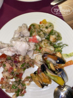 Приехали в отель в 14.50 (в связи с задержкой вылета, а заселение как и везде с 14.00), ресепшен обставлен отлично, мебель новая, мрамор, золотые детали интерьера, автоматическая ароматизация воздуха, кондиционер, приветственные лимонады с печеньем, все вежливы и "на улыбке". Сразу вопрос к администратору: "Дети очень хотят кушать, где у Вас ресторан?", ответ: "К сожалению, обед до 14.30. Но вы можете покушать в баре у пляжа, пока вас регистрируют". Сказано- сделано). В ресторане на баре- практически все места свободны, такой релакс, только шум моря и прекрасный вид. Официанты с улыбкой, уточнили откуда мы, дали меню, оформили заказ. Тут же подошел официант из бара, взял заказ на напитки. Ну что можно сказать, еда вкусная (мои фавориты в ресторане на пляже- кесадилья с тунцом, рыба в кляре, пицца барбекю, брауни с шариком мороженого). Стоит отметить, что ко всем блюдам на улице дополнительно подают картофель фри. По напиткам- качество хорошее, стаканы большие стеклянные на самом баре и большие пластиковые, если выходишь на пляж. Напитки и коктейли наливают от души, никто не смотрит на тебя с укором. Сделают любой коктейль (пина-колада, мохито, кровавая Мэри и т.п.). Безалкогольные напитки- кола, кола0, тоник, швепс, спрайт, фанта, соки порошковые, чай, кофе и др.