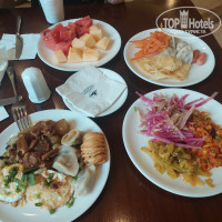 Питание: очень большие 2 зала, каждый день яйца жареные, варёные, солёные, сосиски 2 видов, жареный бекон, картошка фри, 3 вида китайского супа, овощи, соусы , фрукты (дыня, арбуз, апельсины), выпечка 3- 4 видов ( не сладкая, но есть сгущенка, мед), местные варёные булочки, различные гарниры, жареная купюрицы, соки- юпи, кофе, кокосоаое молоко, жареные солёные бобы, вяленый имбирь, кокосовые палочки....выбор достаточно большой голодным точно не останетесь. В столовой чисто, много работников, они следят за чистотой, после каждых посетителей моют столы.