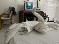 ЗАСЕЛЕНИЕ. Презент в виде пачки сигарет и большой Аленки может и мог повлиять на номер, так как нам был предложен на двоих фэмели рум, но я, начитавшись отзывов, знала, что они находятся у дороги и там шумно от квадрациклов. В итоге нас всех заселили почти в конец отеля в 4 корпус под горой. Преимущества – тишина, недостатки – в этом корпусе не было сушилок на балконе, стояли допотопные ТВ (из русскоязычных только ТНТ) с невозможностью подключить флешку и далеко топать до моря. Изоляция, матрас, подушка в номере - хорошие, ремонт так себе, воду ежедневно пополняли 2 по 1,5 литра; фен, сейф, холодильник (выключали на ночь из-за шума) есть, вода горячая бесперебойно, полотенца чистые, уборка косметическая, кондеем не пользовались, не было пододеяльников, пришлось идти за ними на рецепшен. Решили остаться, так как устали, потом уже и лень было что-то другое просить. Да и вряд ли дали бы - наш бакшиш ушел ночному менеджеру, отель был заполнен под завязку.