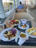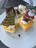 Рождественский ужин нас удивил. Пришли за минут 15 до открытия, все столы на улице были заняты, на вход стояла толпа народу. Когда разрешили войти, мы даже не рискнули, боясь быть затоптанными. Часть закусок была расположена на верхней террасе, вот туда мы и направились. Все красиво, выглядело аппетитно. Так и не найдя свободный столик, плюнули и пошли с тарелками к бару, там и сидели.